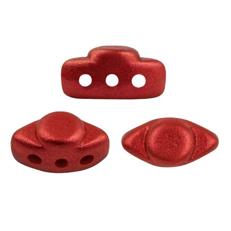 Rozměry 4x8 mm a precizně umístěné tři dírky definují skleněné mačkané korálky Volos® par Puca® jako ideální komponent pro složité prostorové konstrukce a šité šperky. Tento unikátní tvar z dílny francouzské designérky Annick Puca je vyroben z prvotřídního českého skla, což zaručuje dokonalou geometrickou přesnost a hladkost povrchu v barvě RED METALLIC MAT. Díky třem průtahům umožňují tyto korálky bezproblémový vícenásobný průchod nití korálkem, což je nezbytné pro stabilitu náročných projektů, jako jsou náhrdelníky nebo propracované náramky.