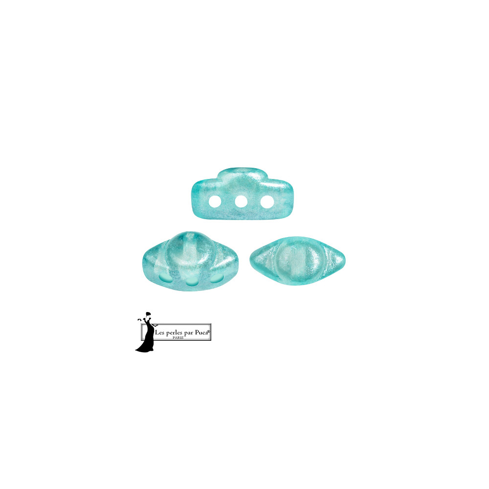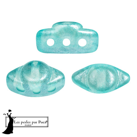 Tyrkysové odlesky připomínající hladinu Azurového pobřeží ožívají v každém šperku, který ozdobíte těmito unikátními elementy. Volos® par Puca® v odstínu Riviera Azur představují vrcholnou eleganci, kde se snoubí francouzský design s poctivou českou sklářskou tradicí. Díky svému specifickému tvaru o velikosti 4x8 mm a třem průtahům umožňují vytvářet složité geometrické vzory, které v kombinaci s Amos® par Puca® nebo Arcos® par Puca® vytvoří vizuálně dokonalý celek.