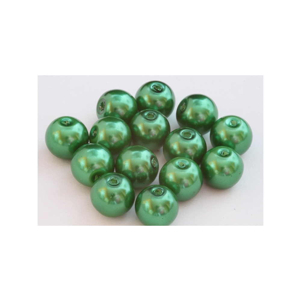 Korálky kuličky Velikost 12 mm Velikost průtahu: 1 mm Balení: 8 ks Barva: zelená Materiál: sklo...