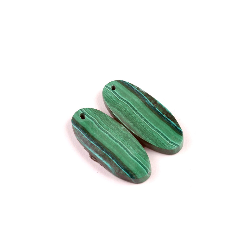 Vrtané Párové Kabošony z přírodního kamene Malachit Chrysocolla