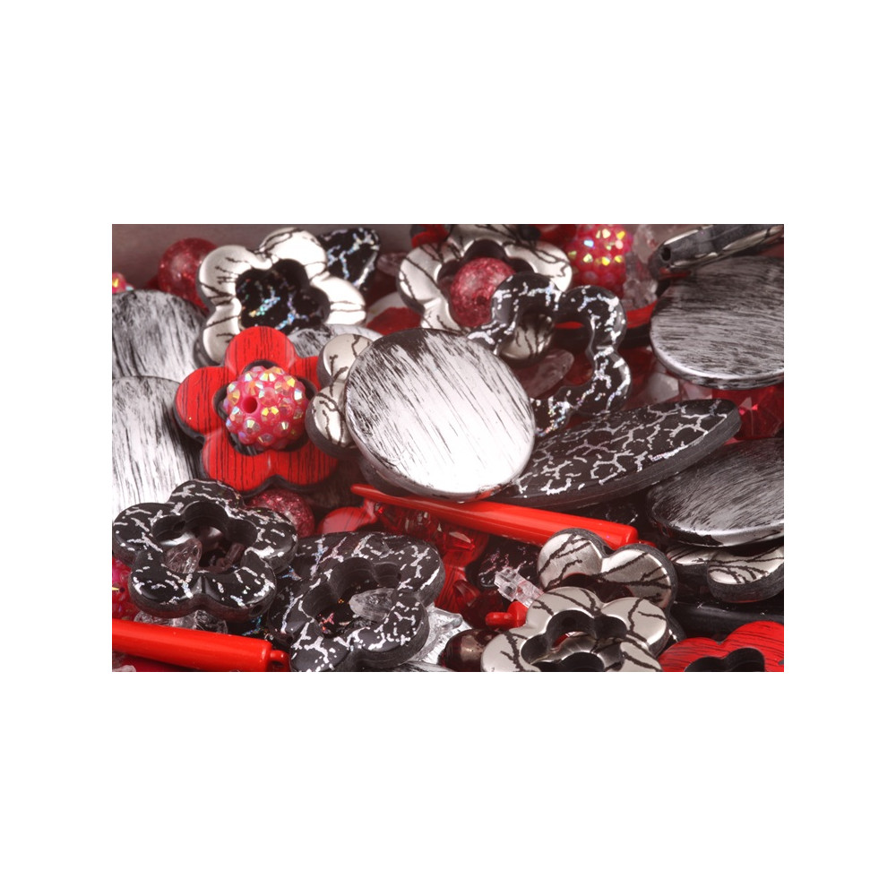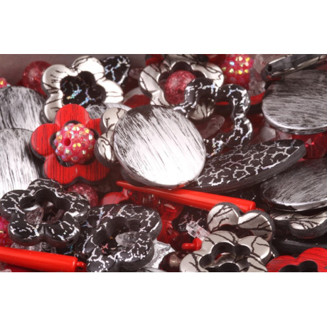 Náhodný mix plastových korálků různých tvarů a velikostí.