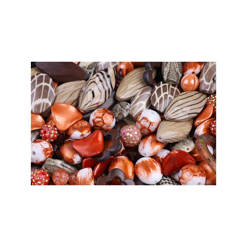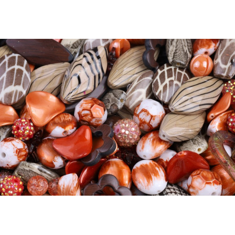 Náhodný mix plastových korálků různých tvarů a velikostí.