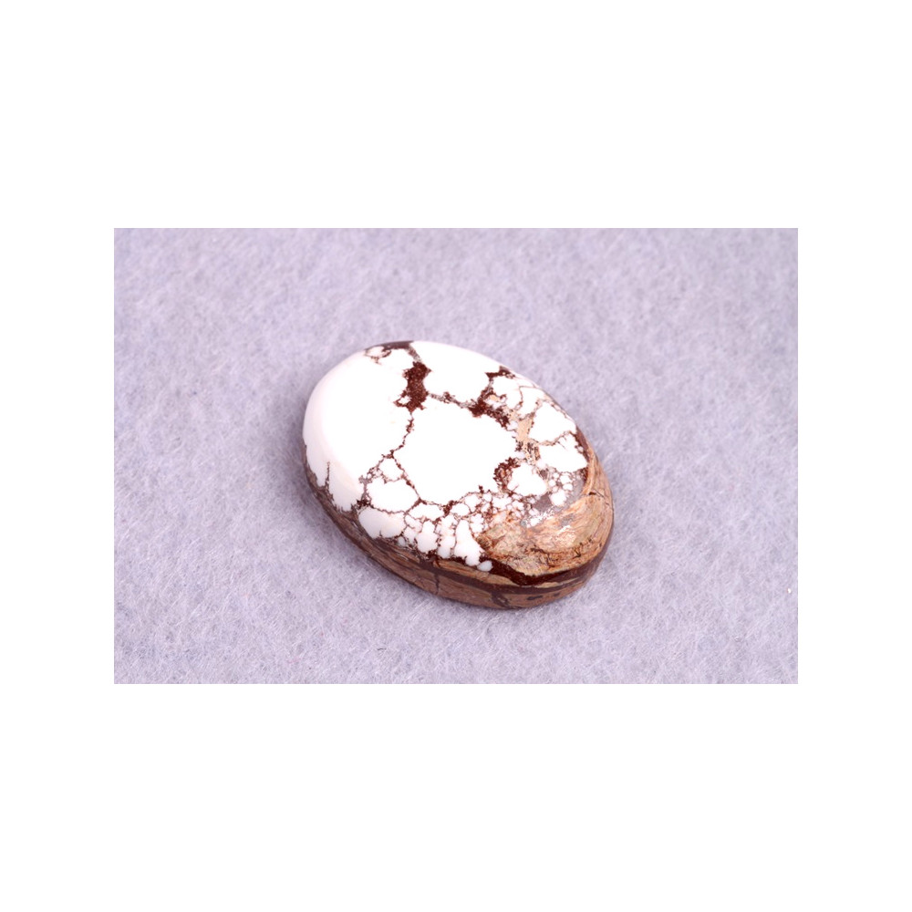 Kabošon z přírodního kamene Wild Horse Jasper je jedinečný přírodní kámen s kontrastním vzorem bílých a hnědých skvrn, které připomínají divokou a nespoutanou krásu přírody. Tento kámen vyniká surovou elegancí a harmonickým propojením světlých a tmavých odstínů, čímž dodává šperkům charakter a jedinečný vzhled. Wild Horse Jasper je známý jako kámen klidu a trpělivosti, který nositeli pomáhá nalézt vnitřní a stabilitu.
