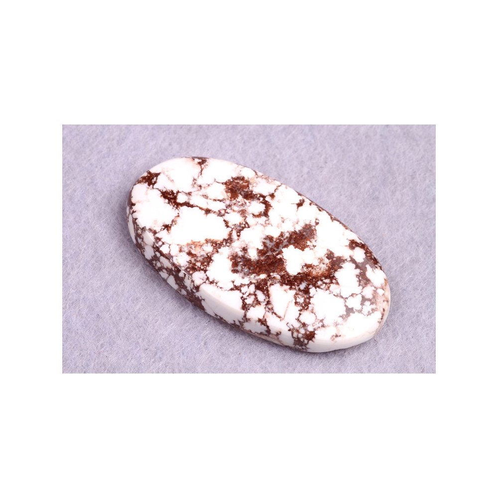 Kabošon z přírodního kamene Wild Horse Jasper je jedinečný přírodní kámen s kontrastním vzorem bílých a hnědých skvrn, které připomínají divokou a nespoutanou krásu přírody. Tento kámen vyniká surovou elegancí a harmonickým propojením světlých a tmavých odstínů, čímž dodává šperkům charakter a jedinečný vzhled. Wild Horse Jasper je známý jako kámen klidu a trpělivosti, který nositeli pomáhá nalézt vnitřní a stabilitu.