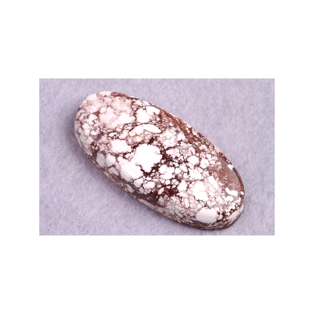 Kabošon z přírodního kamene Wild Horse Jasper je jedinečný přírodní kámen s kontrastním vzorem bílých a hnědých skvrn, které připomínají divokou a nespoutanou krásu přírody. Tento kámen vyniká surovou elegancí a harmonickým propojením světlých a tmavých odstínů, čímž dodává šperkům charakter a jedinečný vzhled. Wild Horse Jasper je známý jako kámen klidu a trpělivosti, který nositeli pomáhá nalézt vnitřní a stabilitu.