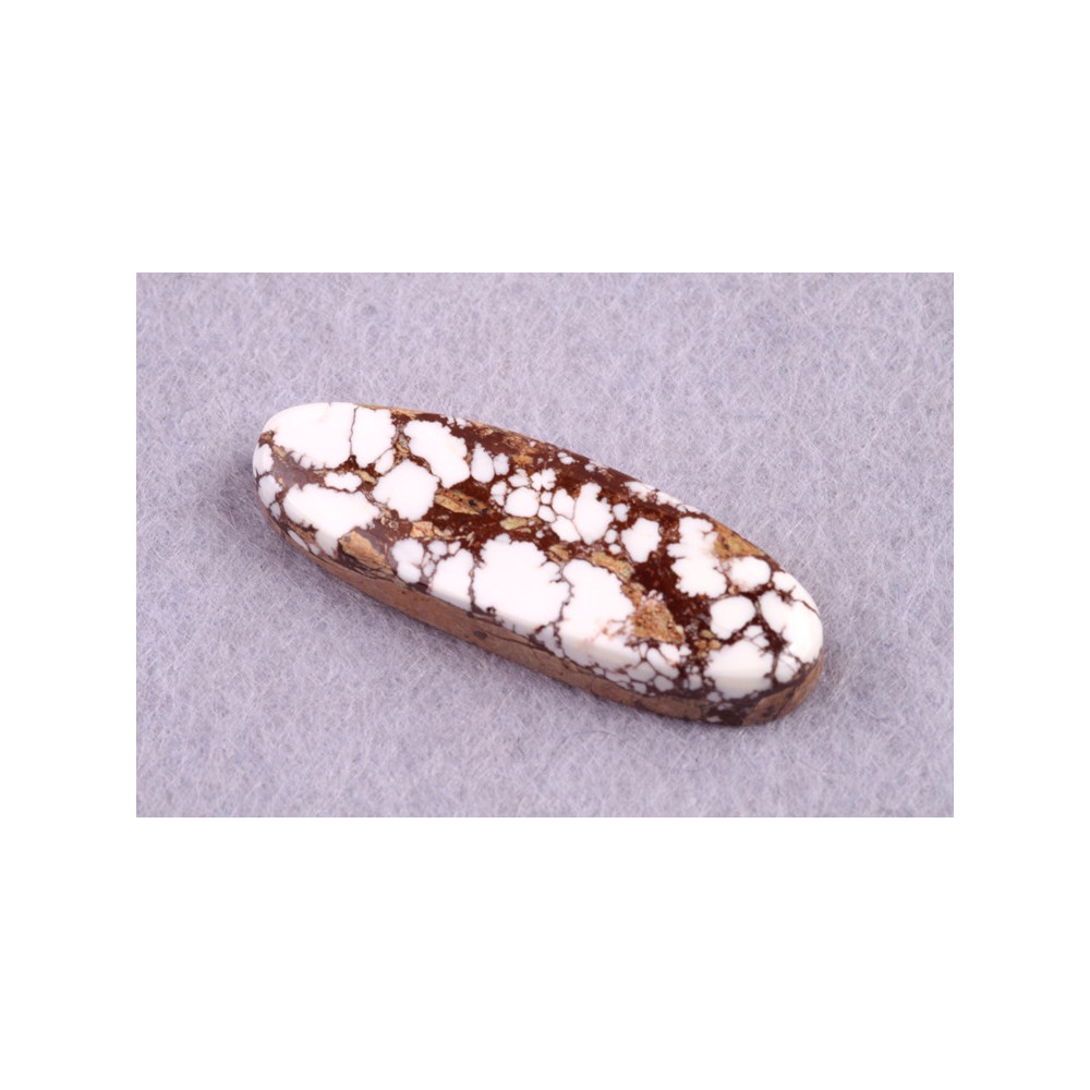 Kabošon z přírodního kamene Wild Horse Jasper je jedinečný přírodní kámen s kontrastním vzorem bílých a hnědých skvrn, které připomínají divokou a nespoutanou krásu přírody. Tento kámen vyniká surovou elegancí a harmonickým propojením světlých a tmavých odstínů, čímž dodává šperkům charakter a jedinečný vzhled. Wild Horse Jasper je známý jako kámen klidu a trpělivosti, který nositeli pomáhá nalézt vnitřní a stabilitu.