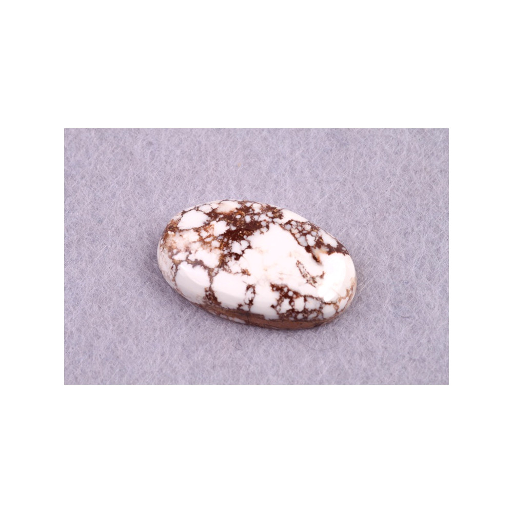 Kabošon z přírodního kamene Wild Horse Jasper je jedinečný přírodní kámen s kontrastním vzorem bílých a hnědých skvrn, které připomínají divokou a nespoutanou krásu přírody. Tento kámen vyniká surovou elegancí a harmonickým propojením světlých a tmavých odstínů, čímž dodává šperkům charakter a jedinečný vzhled. Wild Horse Jasper je známý jako kámen klidu a trpělivosti, který nositeli pomáhá nalézt vnitřní a stabilitu.