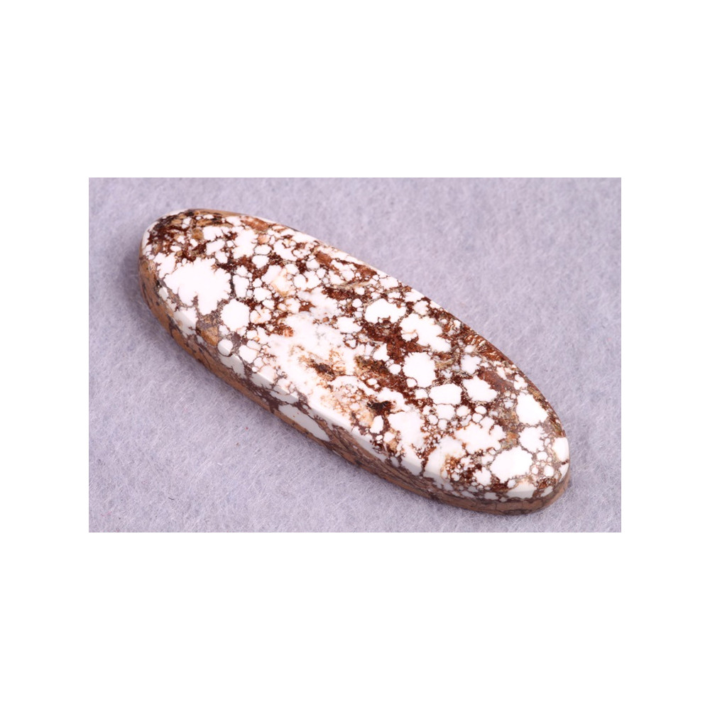 Kabošon z přírodního kamene Wild Horse Jasper je jedinečný přírodní kámen s kontrastním vzorem bílých a hnědých skvrn, které připomínají divokou a nespoutanou krásu přírody. Tento kámen vyniká surovou elegancí a harmonickým propojením světlých a tmavých odstínů, čímž dodává šperkům charakter a jedinečný vzhled. Wild Horse Jasper je známý jako kámen klidu a trpělivosti, který nositeli pomáhá nalézt vnitřní a stabilitu.