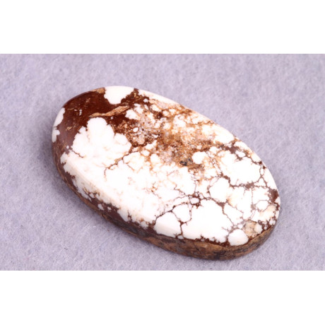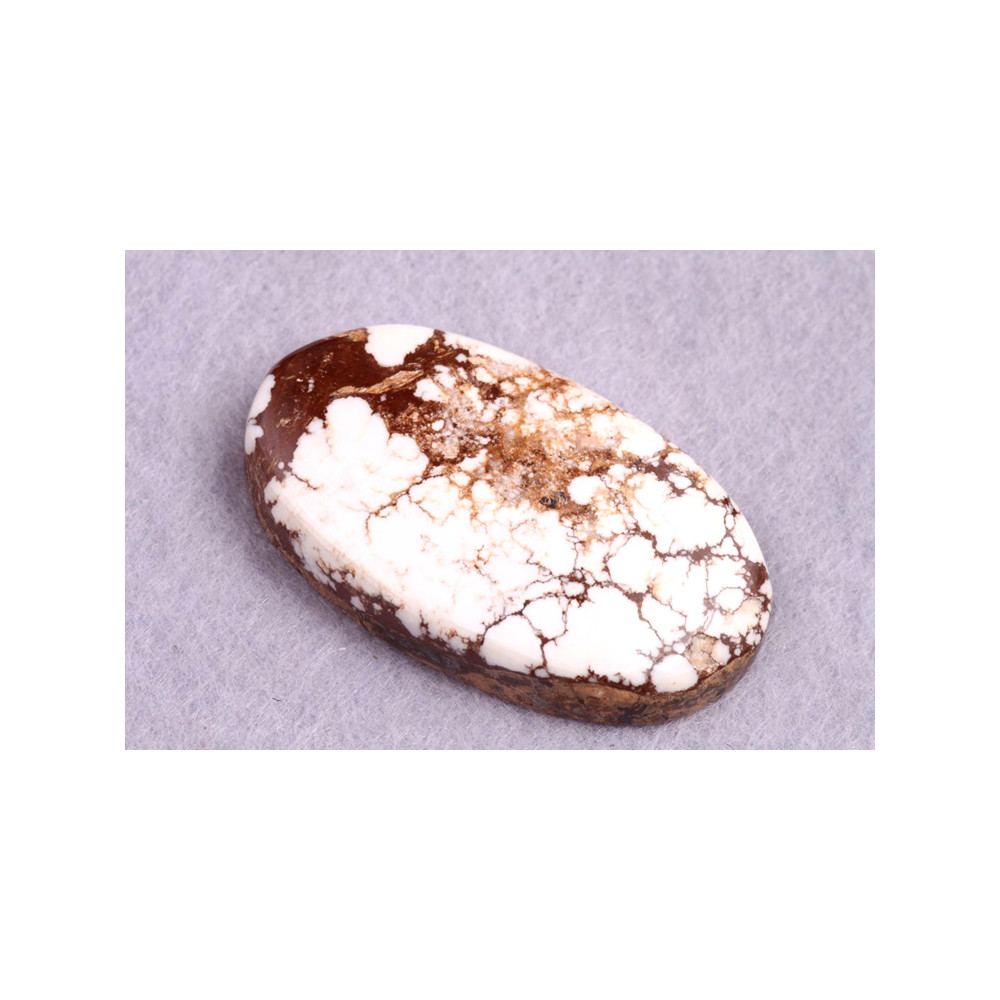 Kabošon z přírodního kamene Wild Horse Jasper je jedinečný přírodní kámen s kontrastním vzorem bílých a hnědých skvrn, které připomínají divokou a nespoutanou krásu přírody. Tento kámen vyniká surovou elegancí a harmonickým propojením světlých a tmavých odstínů, čímž dodává šperkům charakter a jedinečný vzhled. Wild Horse Jasper je známý jako kámen klidu a trpělivosti, který nositeli pomáhá nalézt vnitřní a stabilitu.